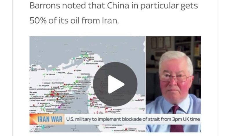 وفي حديثه لقناة Sky News، أشار الجنرال السير ريتشارد بارونز إلى أن الصين تحديدًا تحصل على 50% من نفطها من إيران.