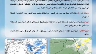 الجوية : غيوم ممطرة ضباب وانخفاض ملحوظ في درجات الحرارة تظهر صور الأقمار الاصطناعية المتحركة الملتقطة امتداد غيوم متفرقة تؤثر…