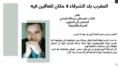 المغرب بلد الشرفاء لا مكان للعاقين فيه بقلم الكاتب الصحافي عبدالله العبادي المختص في الشؤون العربية والإفريقية المغرب ليس مجرد…